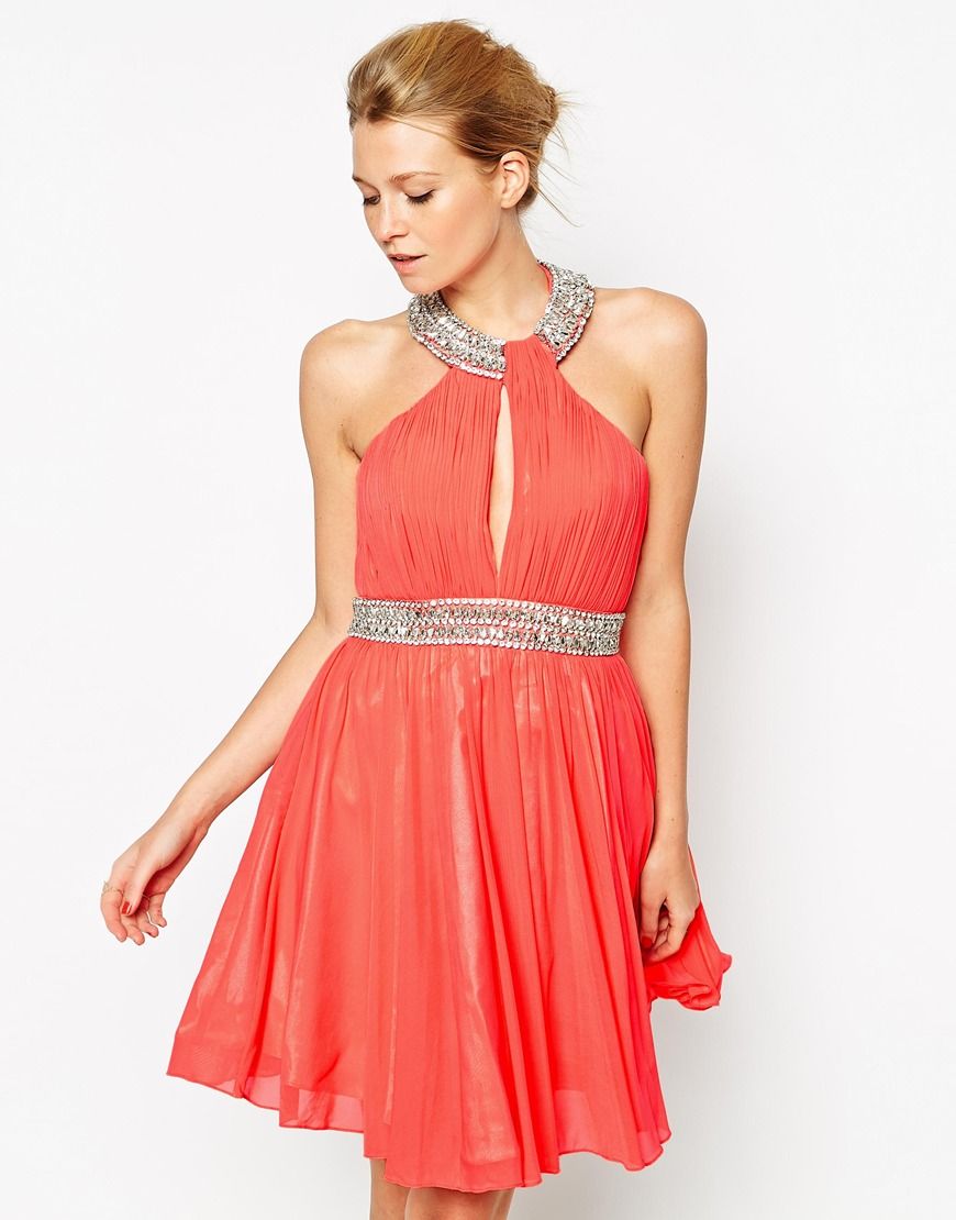 Forever unique - - Hayley - Robe patineuse ornementée - Corail