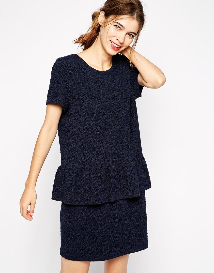 • Ganni - Robe en tweed avec basque - Bleu marine
