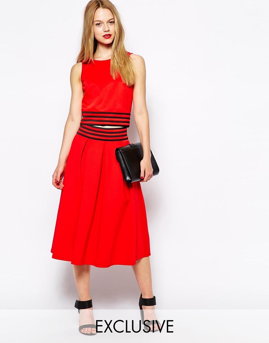 Girls on Film - Jupe mi-longue en néoprène avec bordure rayée