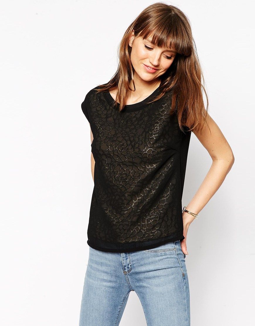 Greylin - Zuma - Top métallisé avec superposition de dentelle - Noir