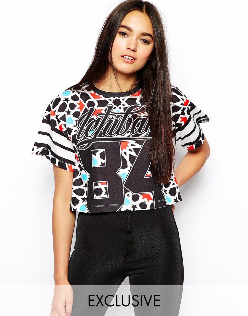 Ichiban - T-shirt court à imprimé festival motif mosaïque style universitaire - Blanc
