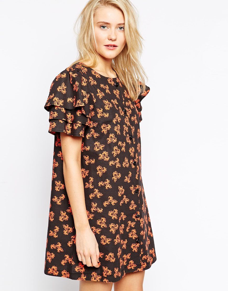 Ivana Helsinki - Robe à fleurs avec manches à volants - Noir