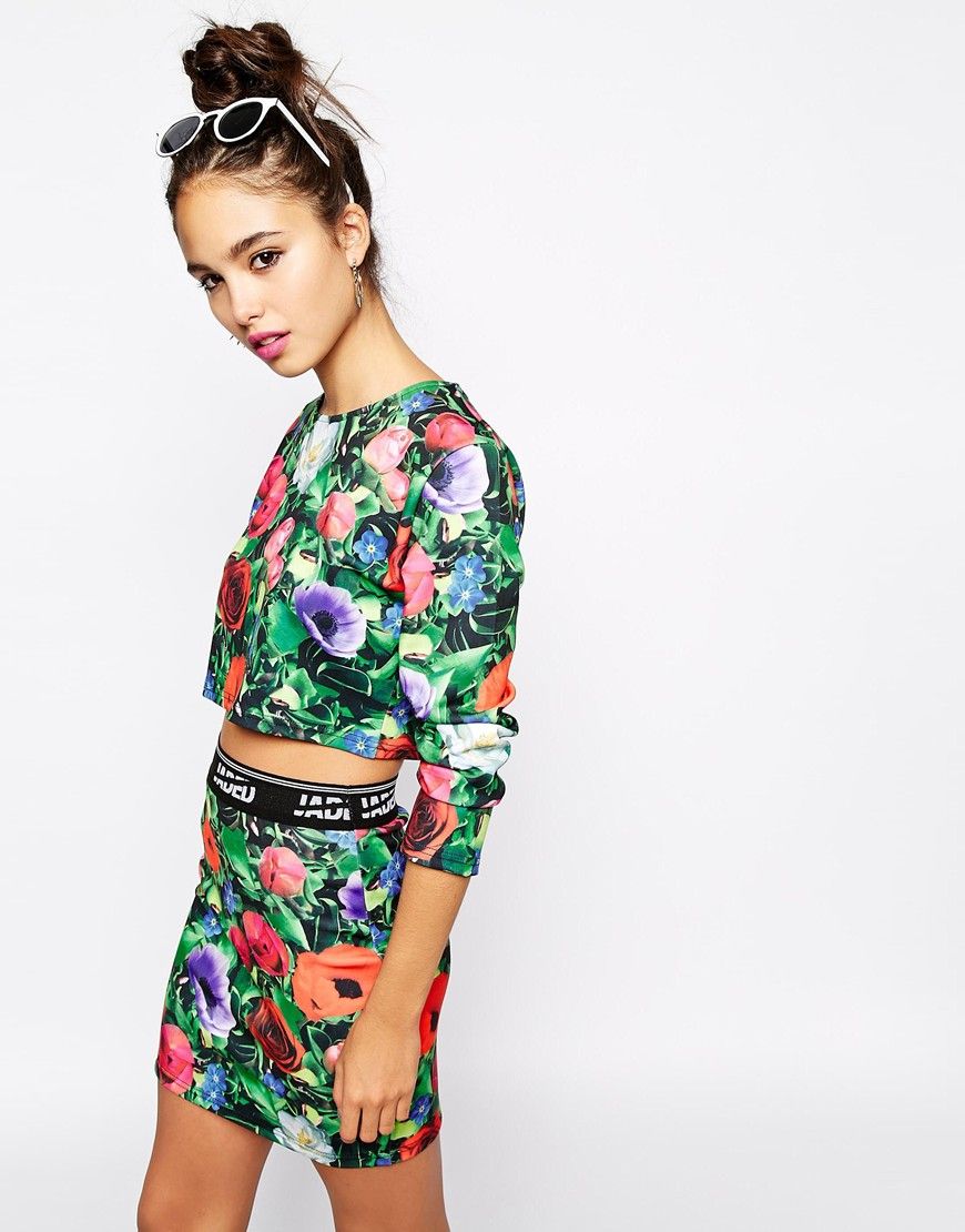 Jaded London - T-shirt court à manches longues coordonné avec imprimé fleurs du jardin - Vert