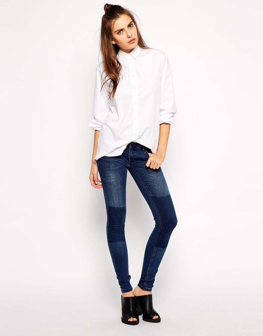 Just Female - Jean skinny taille basse à empiècements - Noir