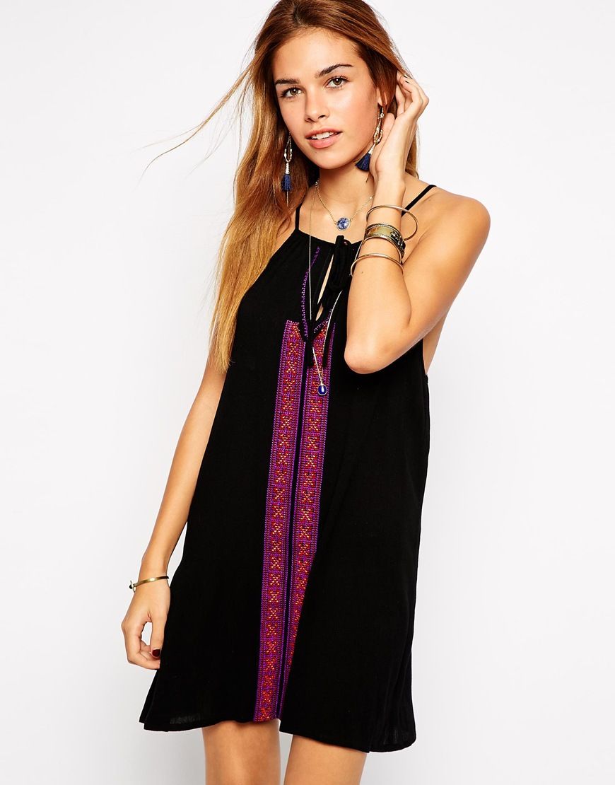 Buy Kiss The Sky - Robe caraco brodée coupe trapèze, robe Kiss The Sky for women on Pickture, in trends like The, Robe, Noir