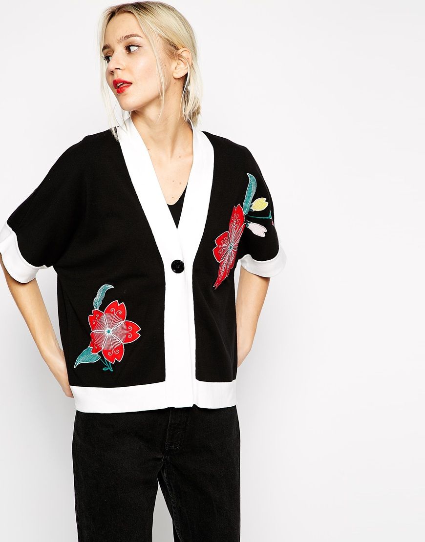Love Moschino - Cardigan manches courtes avec broderies florales - Noir