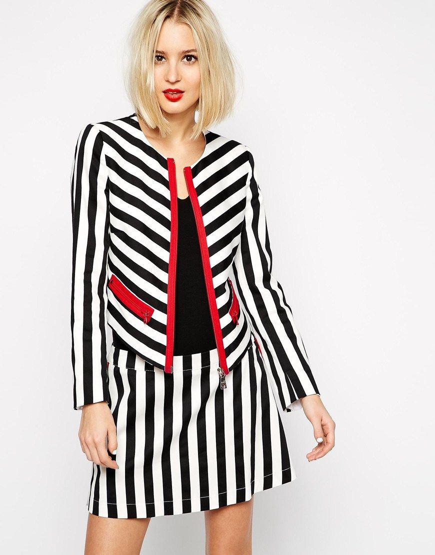 Buy Love Moschino - Veste asymétrique à fermeture, veste Love Moschino for women on Pickture, in trends like Love, Veste, Noir, blanc