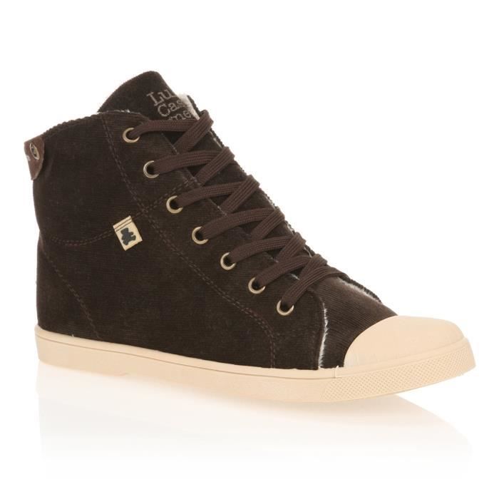 Baskets montantes en textile doux avec doublure en fourrure synthétique, coloris marron.