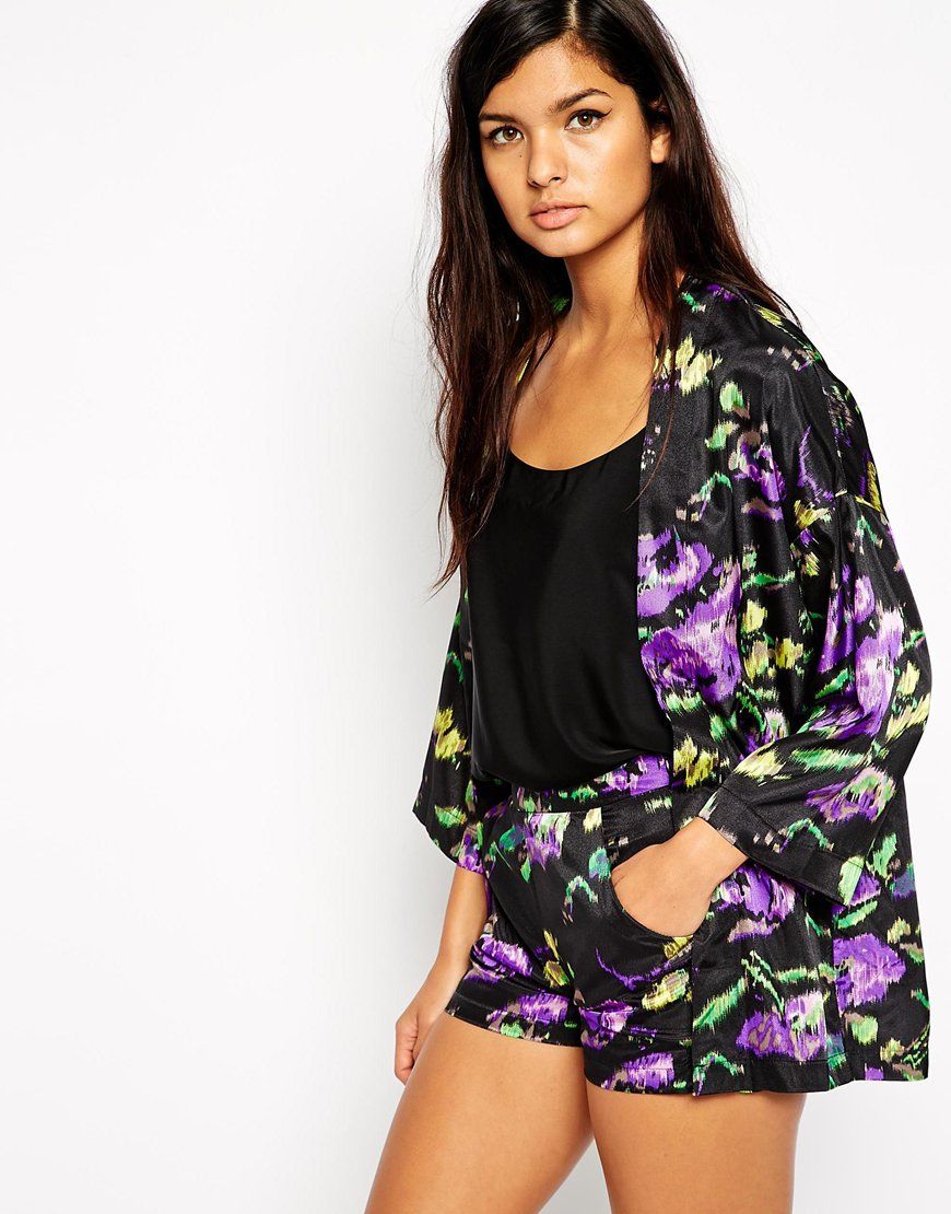 Max C - Blazer manches kimono avec imprimé à fleurs style aquarelle - Noir