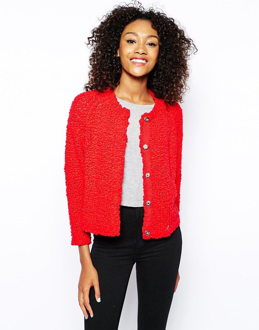Buy Monki - Cardigan en maille, cardigan Monki for women on Pickture, in trends like Monki, Cardigan, maille, Rouge