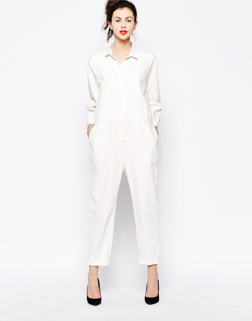 Buy Monki - Grenouillère en jean, jean Monki for women on Pickture, in trends like Monki, jean, Blanc