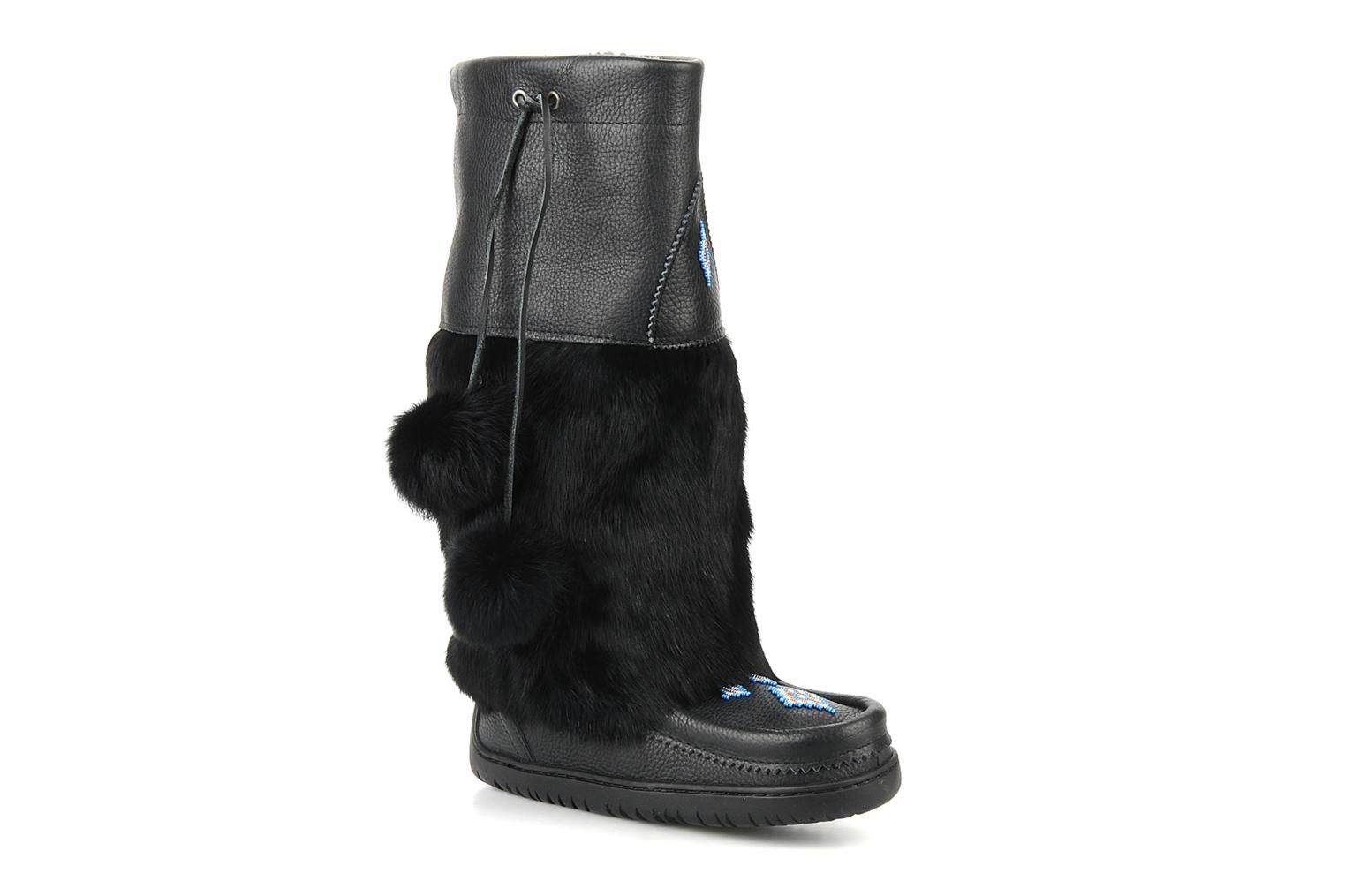 Bottes en cuir suede avec fourrure en lapin, montées sur une semelle en gomme Vibram, pour Femme de la marque Manitobah. La semelle intérieure est non amovible. La largeur de la chaussure est de 9cm.Les mesures sont réalisées sur une pointure 38.