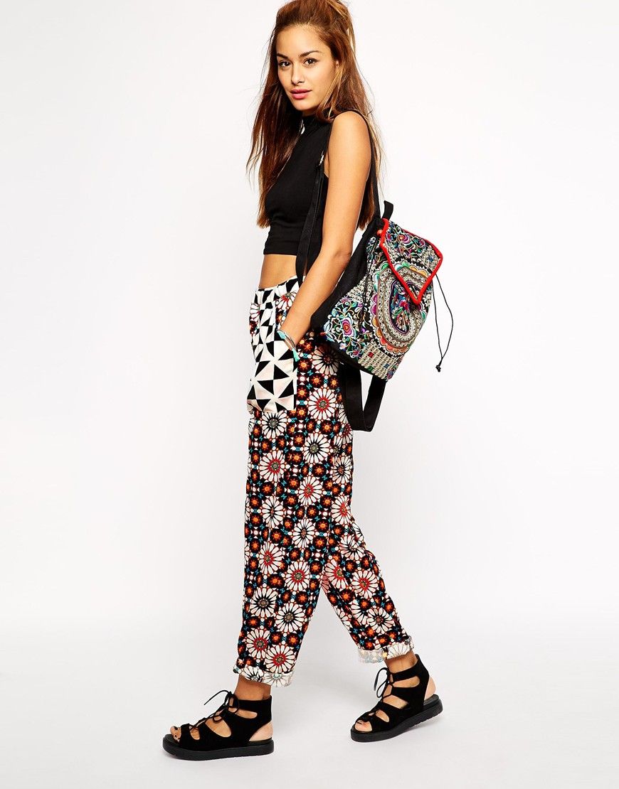 Native Rose - Pantalon souple à imprimé spirographe façon patchwork - Multi