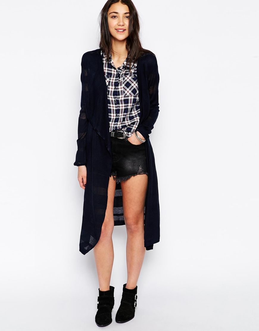 • Only - Cardigan ultra long effet cascade - Bleu marine