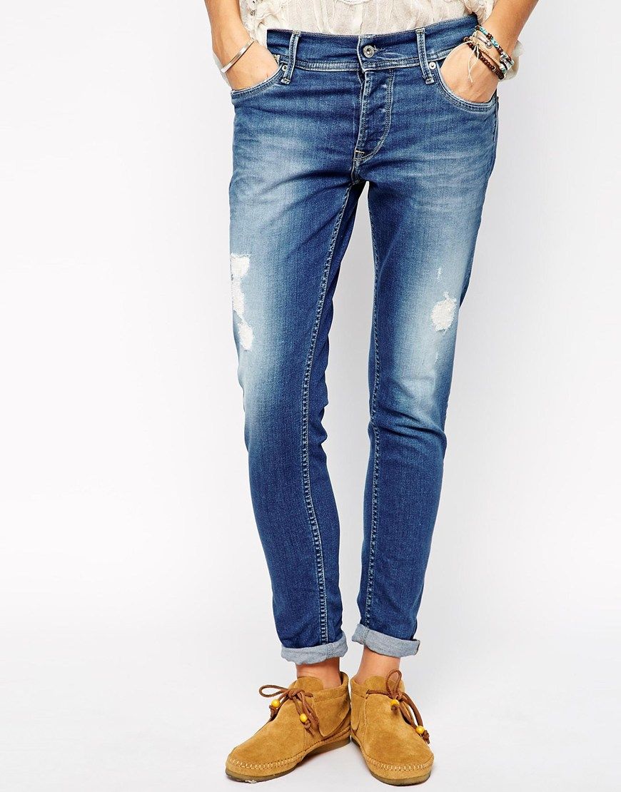 • Pepe Jeans - Joey - Jean boyfriend court coupe slim effet vieilli - Délavage moyen