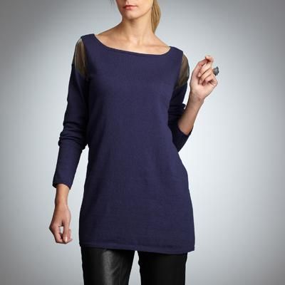 Pull tunique bi-matière