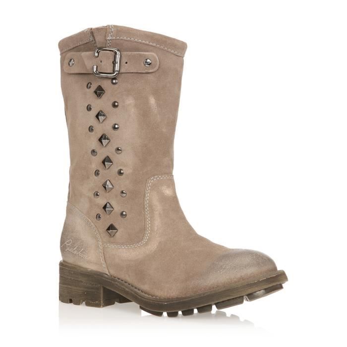 Bottes a la tige en cuir avec clous fantaisie sur le côté et boucle de serrage, coloris taupe.