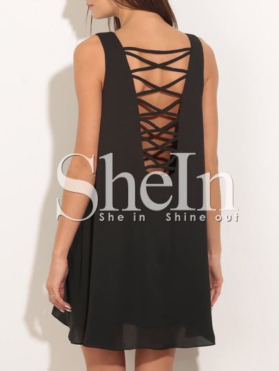 Buy robe noire sans manche dos croix, robe Shein for women on Pickture, in trends like robe, noire