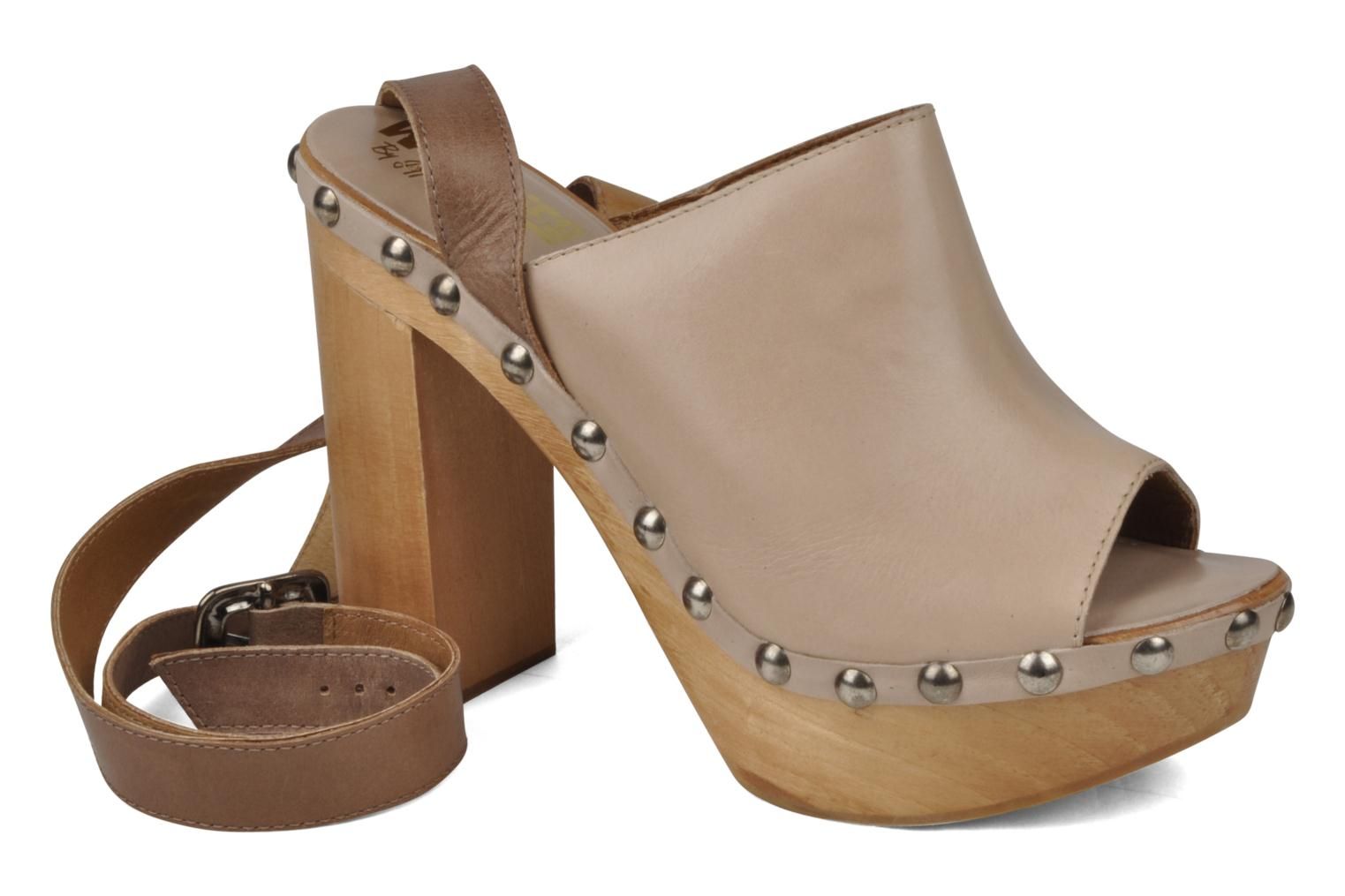 Mules Jeffrey Campbell Sancrof pour femme, en cuir, à bout rond, retenues par une bride à nouer autour de la cheville, montées sur une semelle de bois et caoutchouc, avec un talon de 11 cm compensé par un plateau de 2 cm. Un peu sabot, très sandale, complètement sexy et glamour : comment résister à la Sancrof de l'excentrique Jeffrey Campbell ?