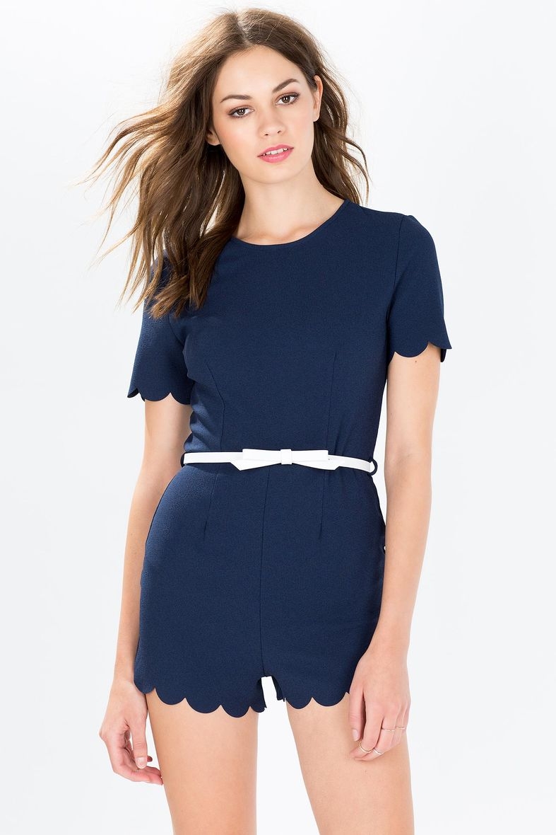 Buy Scallop Hem Belted Romper, romper A'Gaci for women on Pickture, in trends like Romper