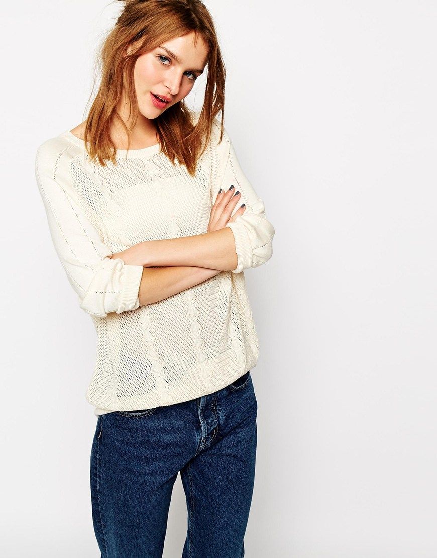• Sessun - Pull en maille ajournée avec manches 3/4 - Fleur de sel