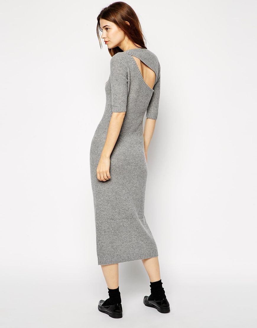 Shae - Robe longue en cachemire effet gaufré à surpiqûres et fente arrière - Gris chiné