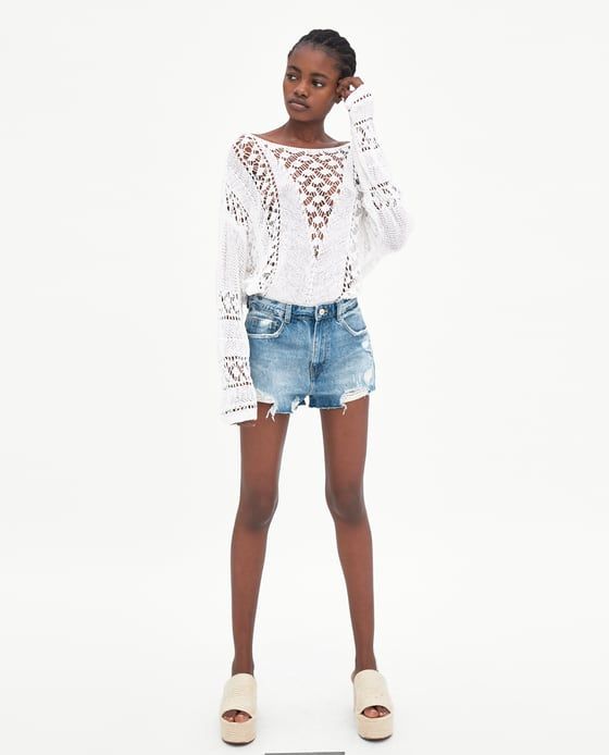 Zara - SHORT EN JEAN DÉCHIRÉ TAILLE HAUTE Détail