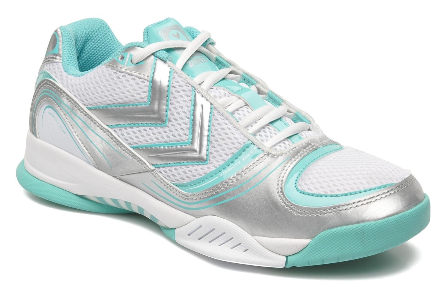 Conçues spécialement pour éviter les blessures à la cheville, les chaussures de handball Spirit Lady de Hummel bénéficient entre autres de la technologie "Impact zone" dans le talon pour maximiser l'absorption des chocs: vous pouvez maintenant vous donner à fond! Chaussures de sport indoor Hummel Lady Spirit pour femme, en textile et simili-cuir, à lacets (6 œillets), montées sur une semelle de gomme. La semelle intérieure est amovible. Les mesures sont réalisées sur une pointure 38. Le poids de la chaussure est de 210 g.