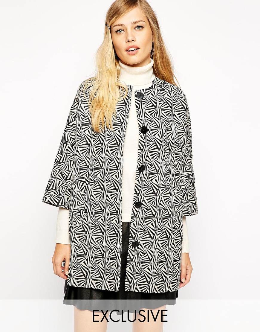 Studio 4 London - Manteau kimono avec poches en biais et imprimé géométrique - Noir et blanc