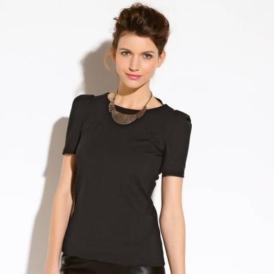 Ligne structurée et maille milano stretch, ce tee-shirt femme affiche un style actuel et citadin...FICHE SHOPPING - 2 pinces devant sous l'encolure ronde - Manches courtes structurées avec plis ...
