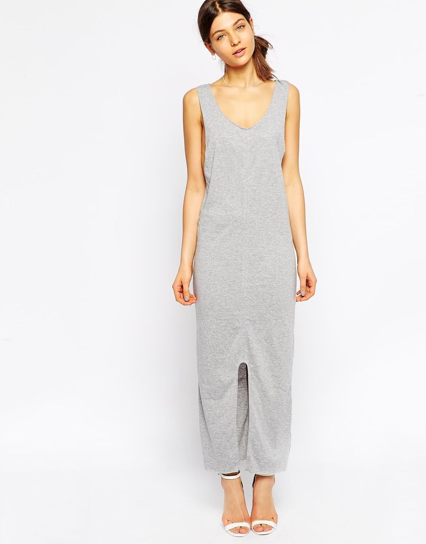 • Tired Of Tokyo - Maxi robe en jersey sans manches avec ourlet asymétrique - Gris