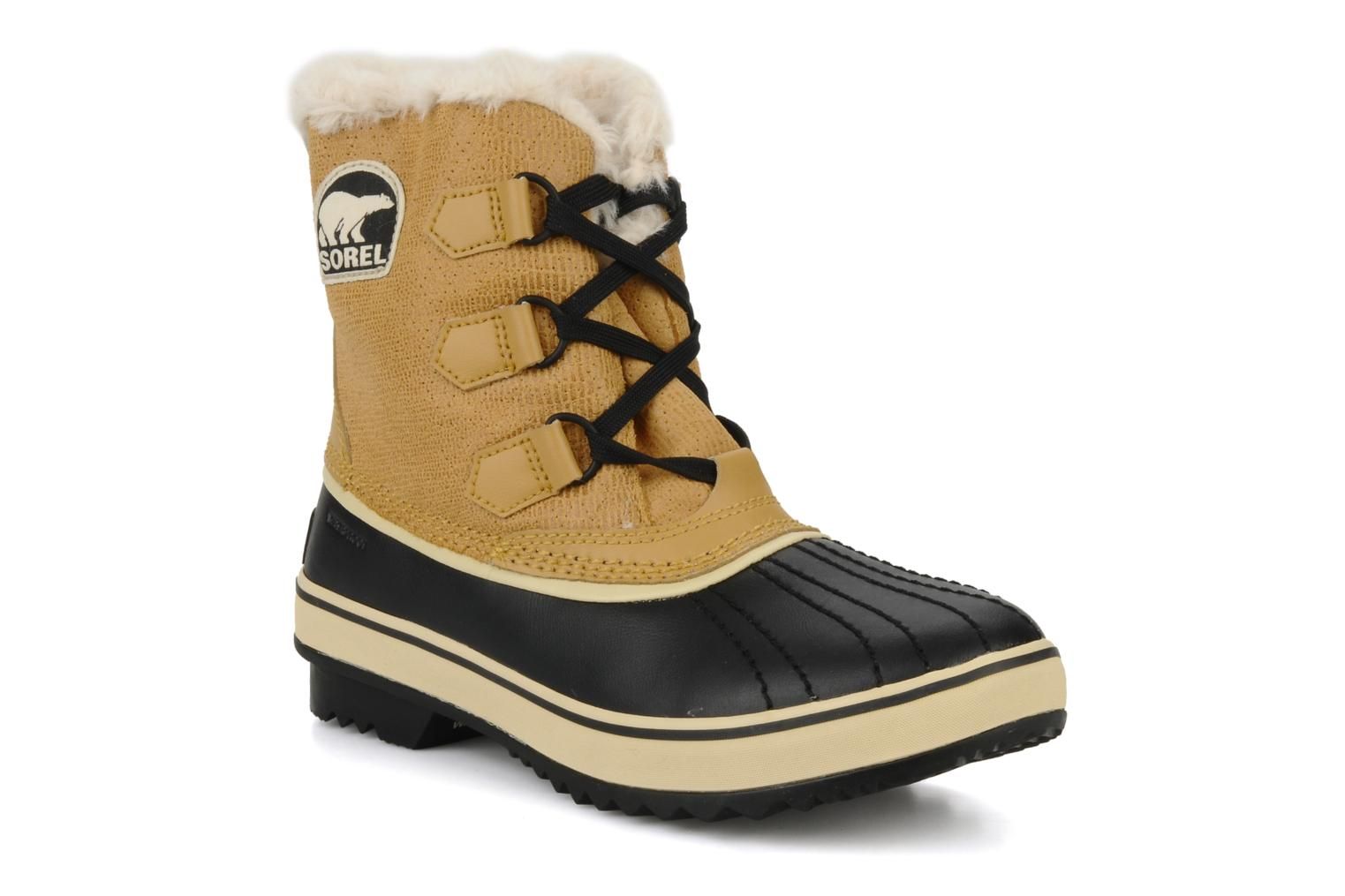 Bottes de ski Sorel Tivoli pour femme, en cuir et toile imperméabilisée doublés de fourrure synthétique, à bout rond, à lacets (3 passants), montées sur une semelle de caoutchouc, avec un talon de 3 cm. La semelle intérieure est amovible. La largeur de la chaussure pour une pointure 38 est de 9 cm. Parfaites pour les temps froids, pluvieux et neigeux avec leur semelle de caoutchouc, leur tige de toile imperméable et leur doublure de fourrure, les bottes Tivoli de Sorel se déclinent en plusieurs versions à fleur, à carreaux ou blanche immaculée, pour que chacune trouve botte à son pied !