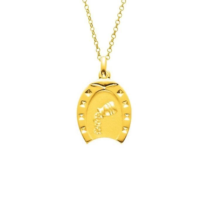 Ce collier zodiaque est composé d'une chaine jaseron et d'un pendentif du signe verseau. Sa forme arrondie et martelée rappelle celui des fers a cheval. Il est en plaqué Or. Sa longueur est de 45 cm et ses dimensions sont 1,2 x 1,9 cm. Ce bijou est livré en écrin avec certificat d'authenticité et de garantie.