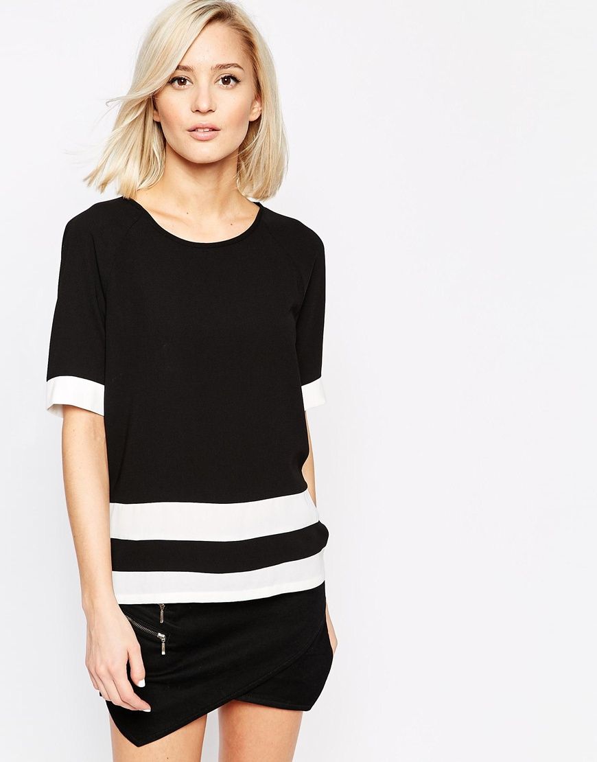 • Vero Moda - T-shirt rayé coupe carrée - Noir