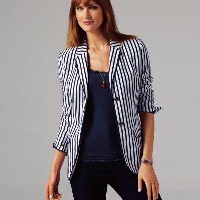 Association tendance de la décontraction de la maille milano et de la sophistication de la coupe tailleur de cette veste élégante. Col tailleur. 2 poches à revers et boutonnage de poignet ornés d'une ganse contrastée. Ligne galbée par des découpes, fermée par boutons métal fantaisie e...