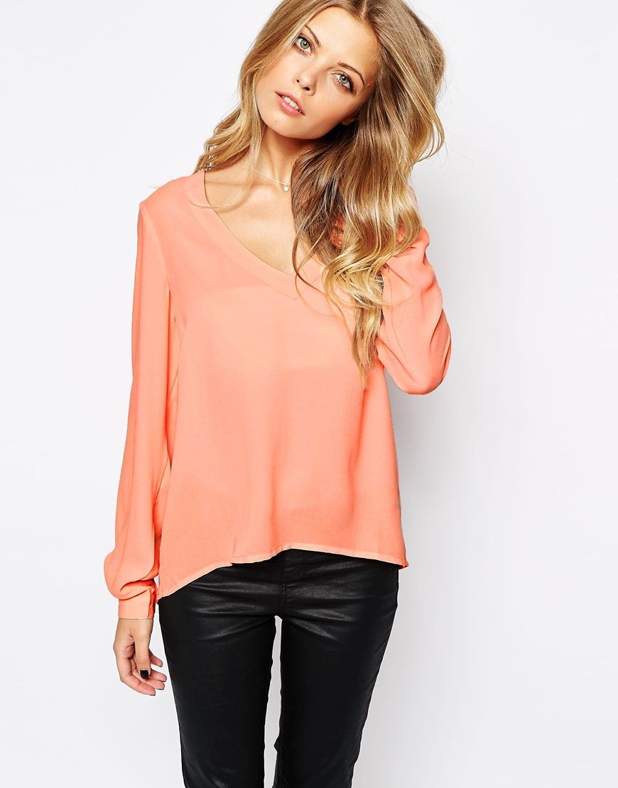 • Vila - Top Ă  dĂ©colletĂ© plongeant - Apricot