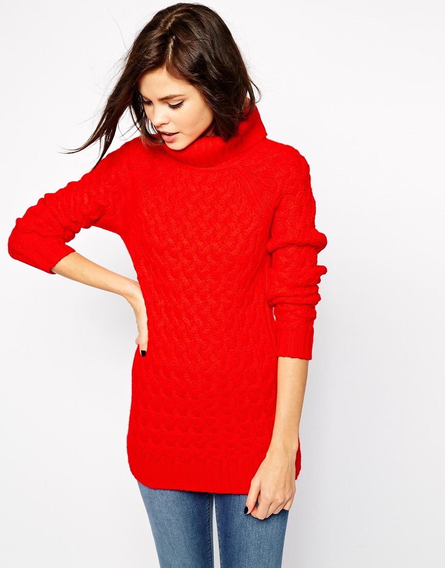 Buy Warehouse - Pull long à col roulé motif torsades, pull Warehouse for women on Pickture, in trends like Warehouse, Pull, motif, Rouge