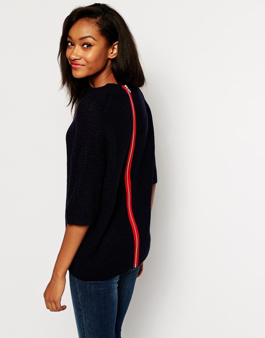 • Warehouse - T-shirt oversize en maille gauffrée avec fermeture éclair au dos - Bleu marine