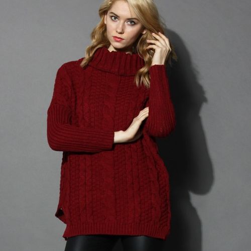 Buy Wine Cable Knit Roll Neck Sweater, for women on Pickture, in trends like Wine, Knit, Sweater