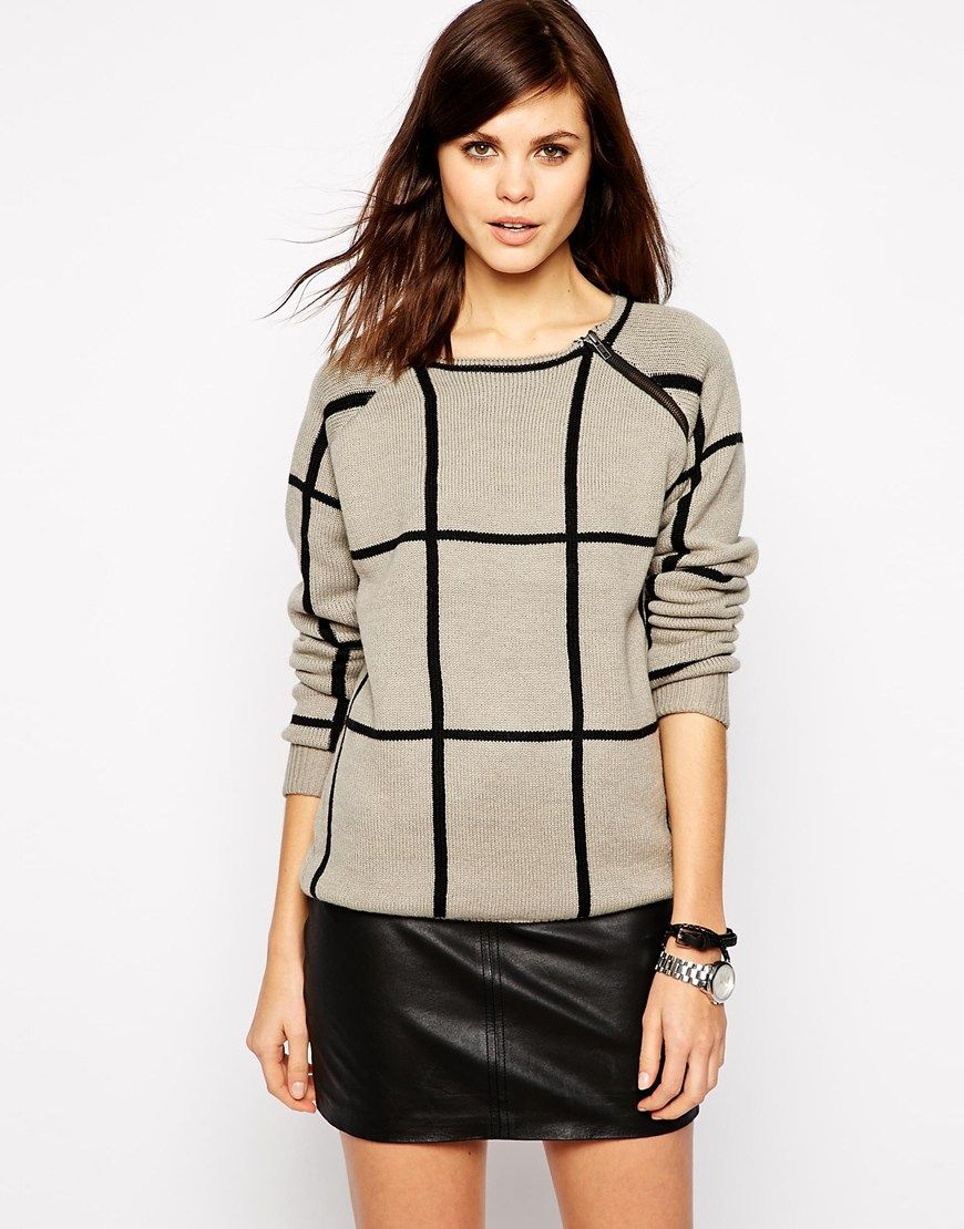 Y.A.S - Risky - Pull en maille à carreaux géométrique - Tourterelle du matin