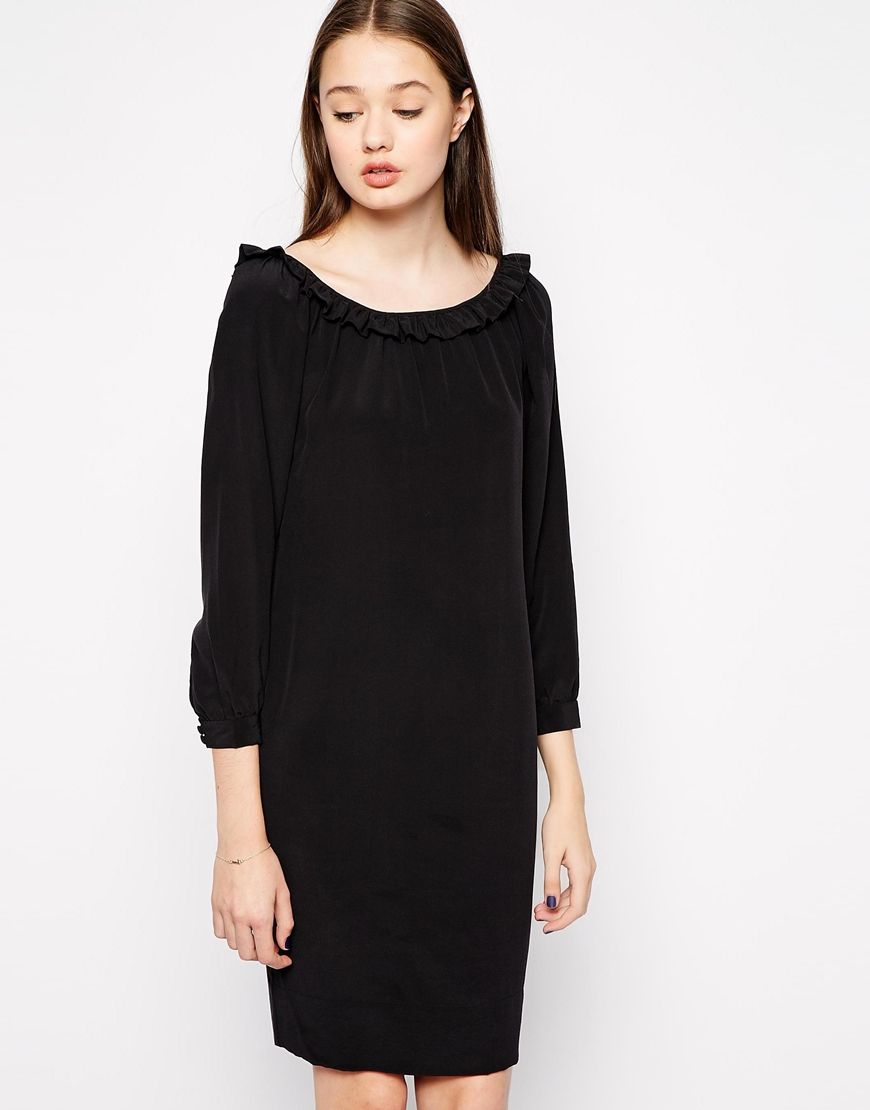 Ymc - - Robe droite en soie à manches blousantes - Noir