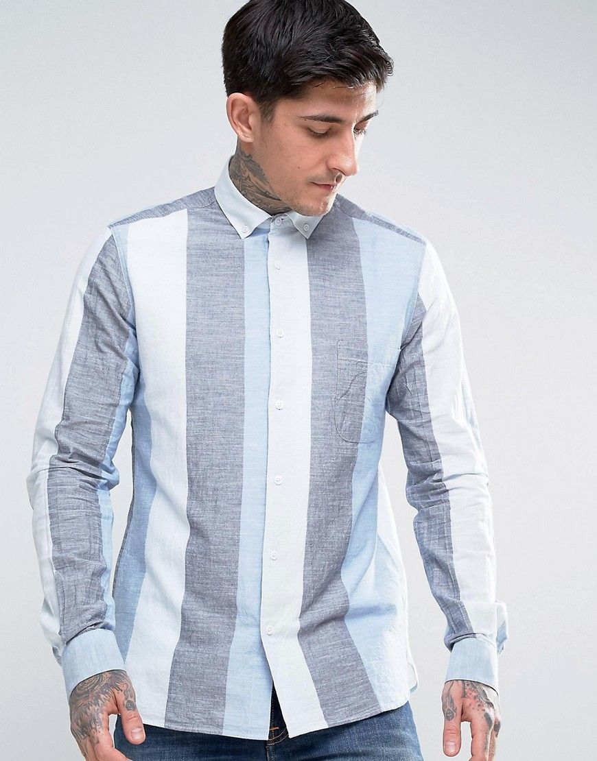 Ymc - - Chemise boutonnée à larges rayures - Bleu